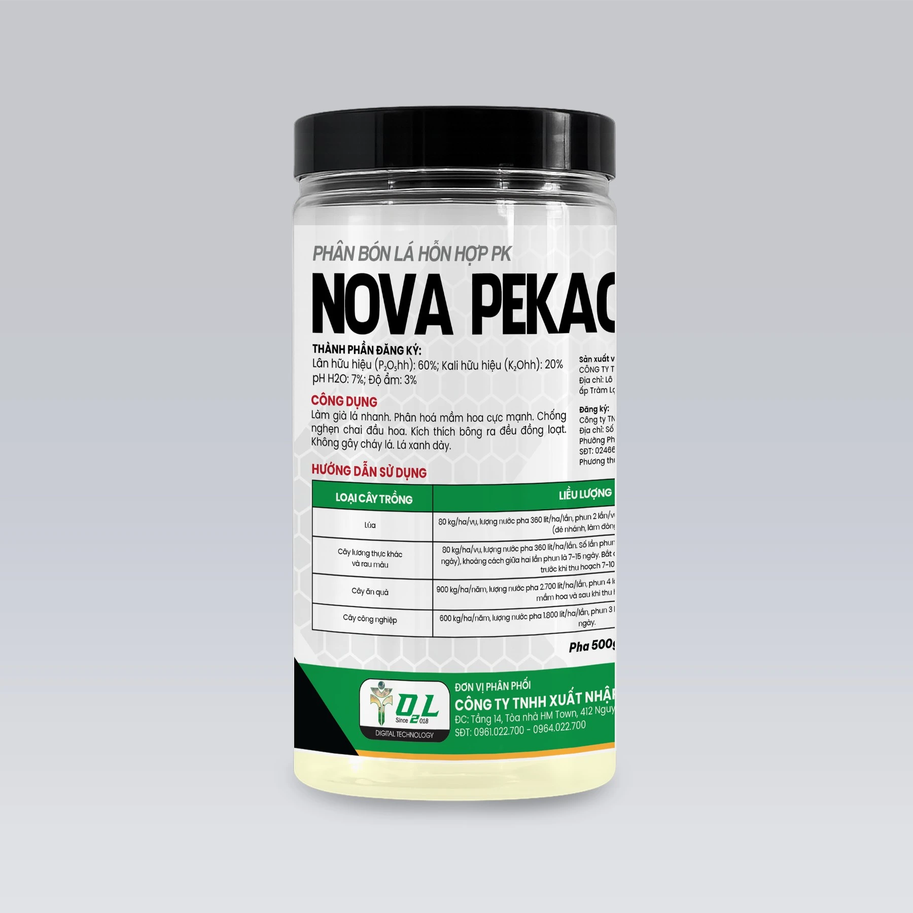 NOVA PEKACID ICL 0-60-20+TE PHÂN HÓA MẦM HOA, CHỐNG NGHẸN-CHAI ĐẦU HOA