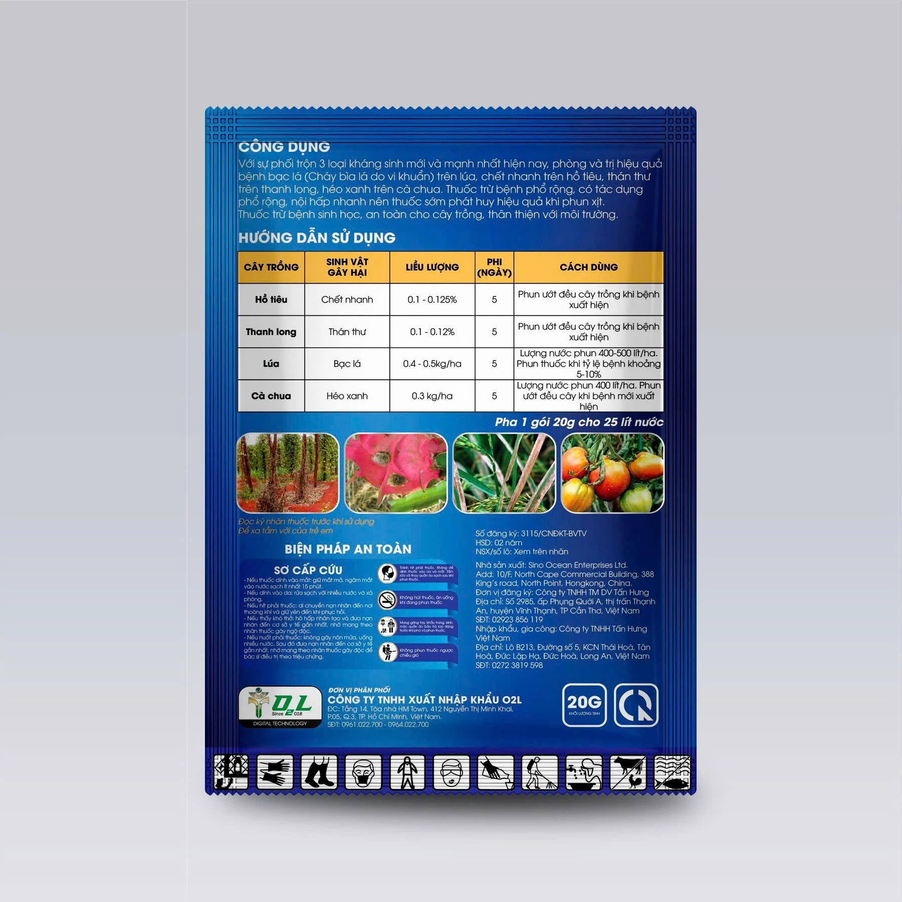 – Đặc trị vi khuẩn gây hại trên cây trồng như: bạc lá trên lúa, chết nhanh trên hồ tiêu, thán thư trên thanh long, héo xanh trên cà chua,…