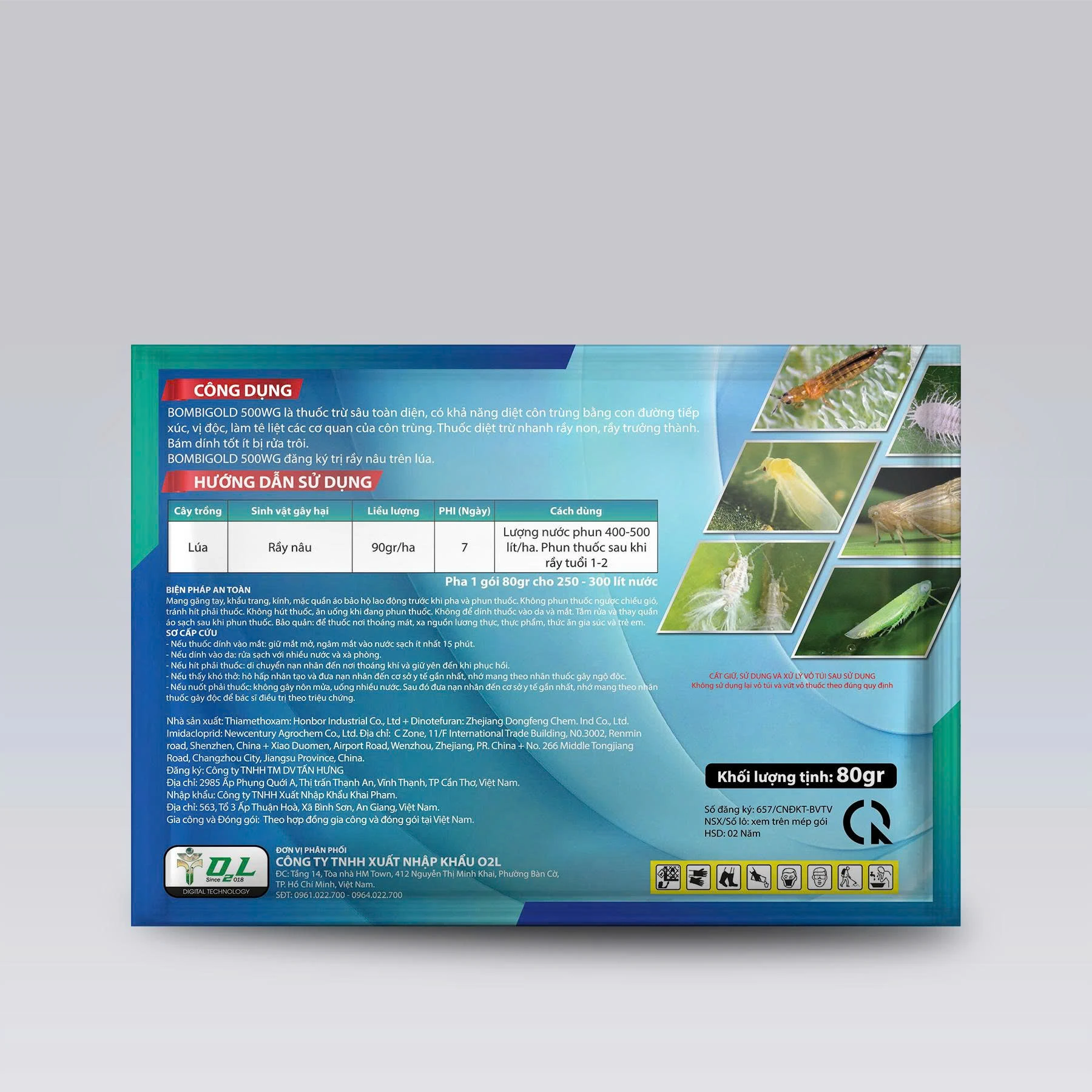 – BOMBIGOLD 500WG là thuốc trừ sâu toàn diện, có khả năng diệt côn trùng bằng con đường tiếp xúc, vị độc, làm tê liệt các cơ quan của côn trùng. Thuốc diệt trừ nhanh rầy non, rầy trưởng thành. Bám dính tốt ít bị rửa trôi, diệt rầy toàn diện.