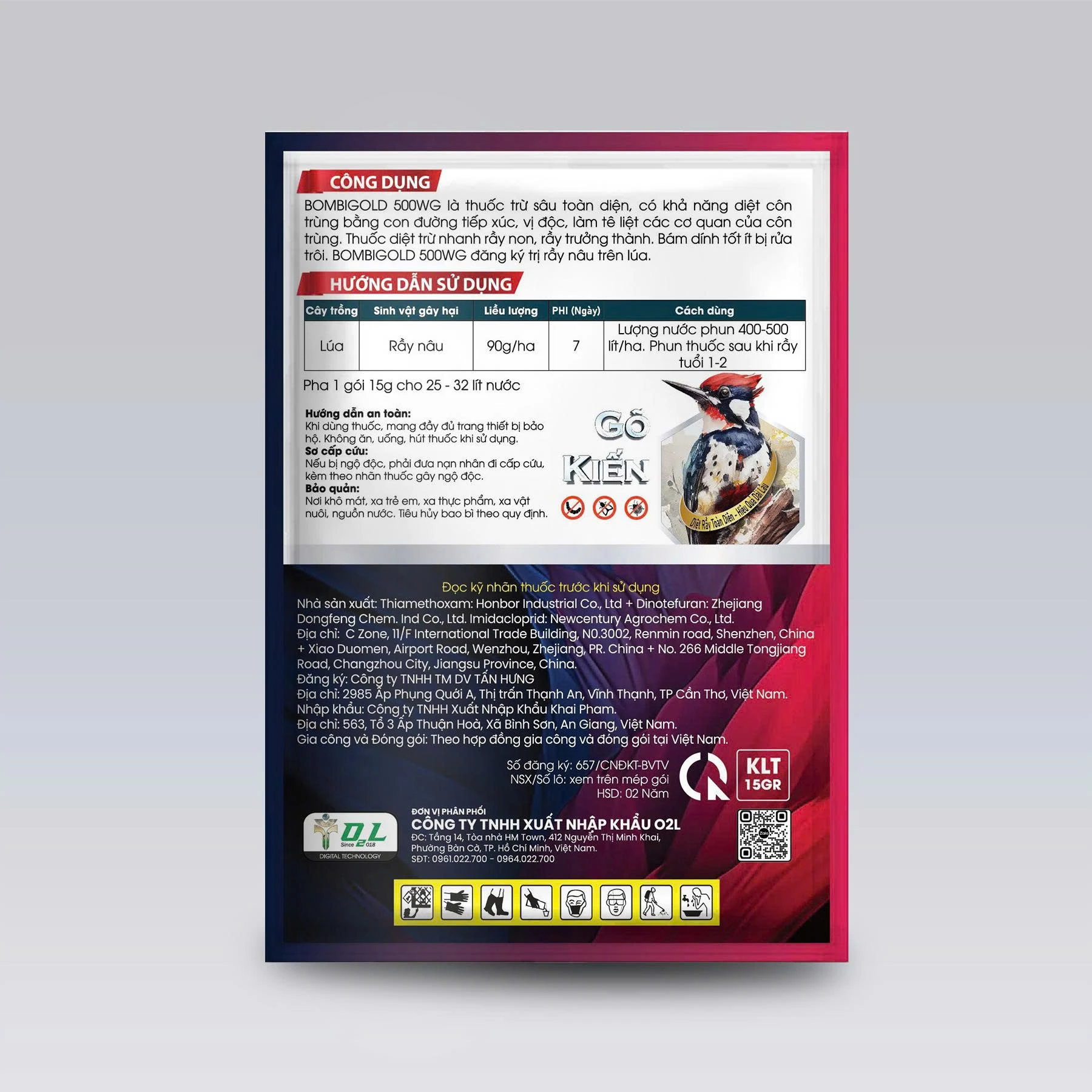 – BOMBIGOLD 500WG là thuốc trừ sâu toàn diện, có khả năng diệt côn trùng bằng con đường tiếp xúc, vị độc, làm tê liệt các cơ quan của côn trùng. Thuốc diệt trừ nhanh rầy non, rầy trưởng thành. Bám dính tốt ít bị rửa trôi.