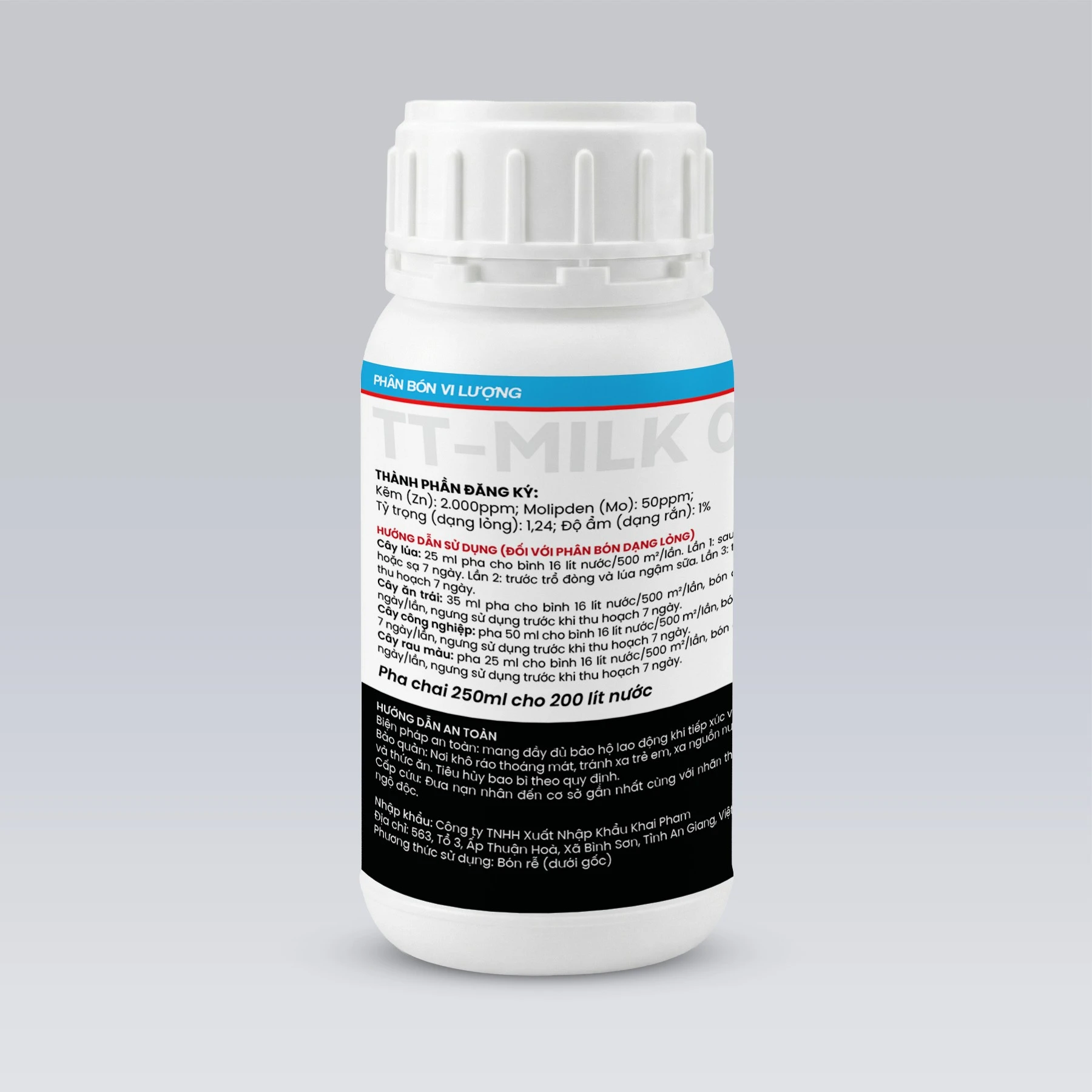 Pha chai 250ml cho 200 lít nước
