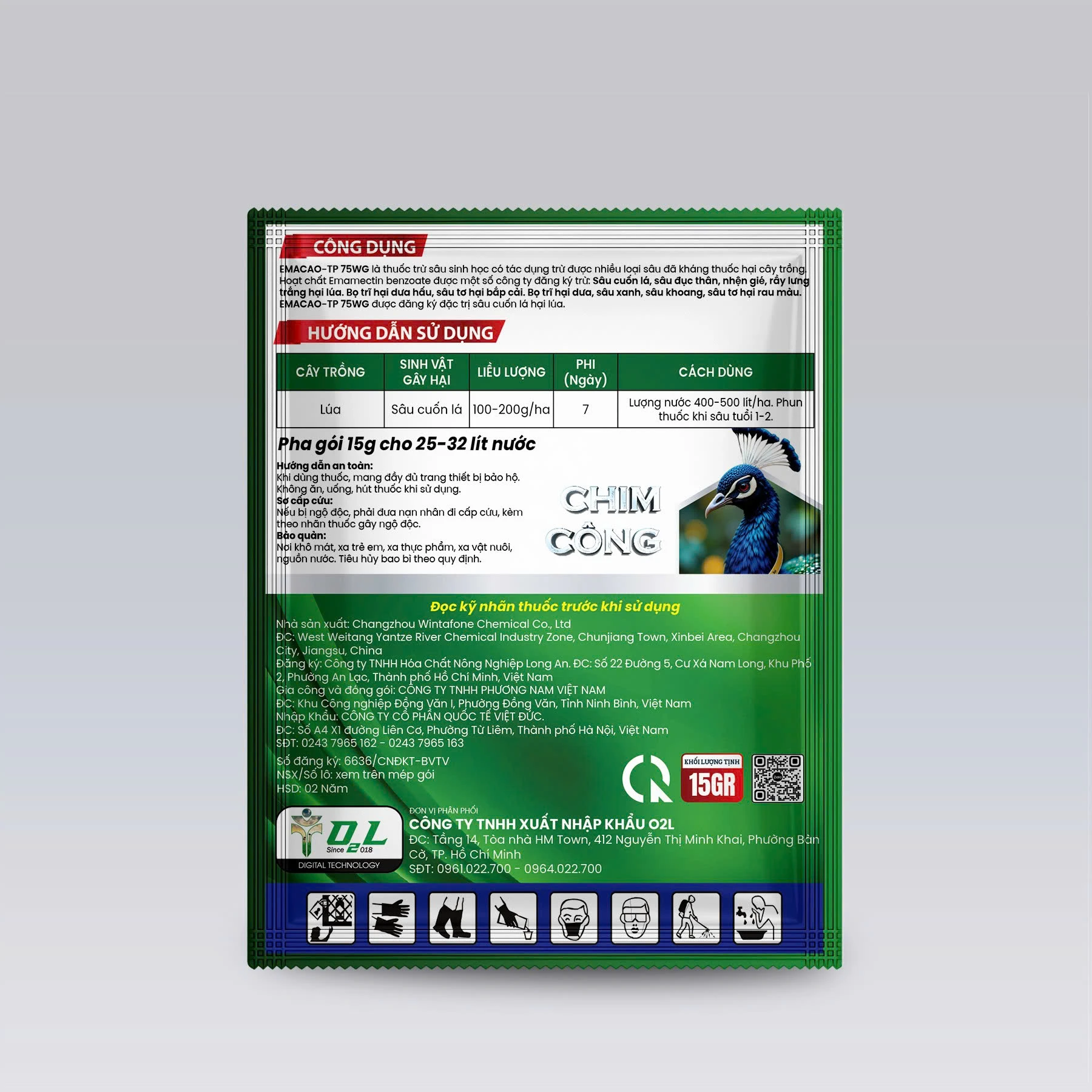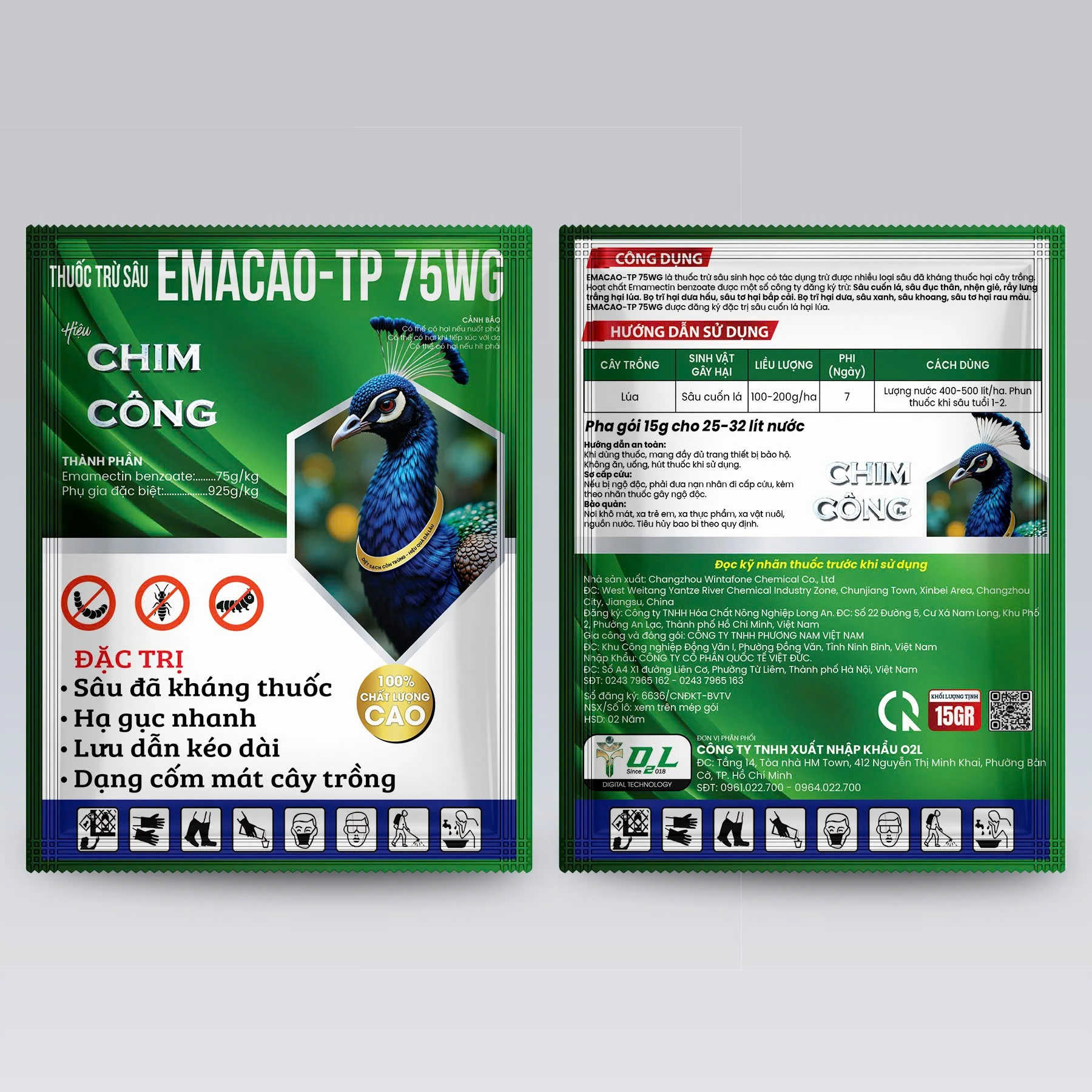 EMACAO-TP 75WP là thuốc trừ sâu sinh học có tác dụng trừ được nhiều loại sâu đã kháng thuốc hại cây trồng. Hoạt chất Emamectin benzoate được một số công ty đăng ký trừ: sâu cuốn lá, sâu đục thân, nhện gié, rầy lưng trắng hại lúa.Bọ trĩ hại dưa hấu, sâu tơ hại bắp cải. Sâu xanh dưa, sâu xanh, sâu khoang, sâu tơ hại rau màu.
