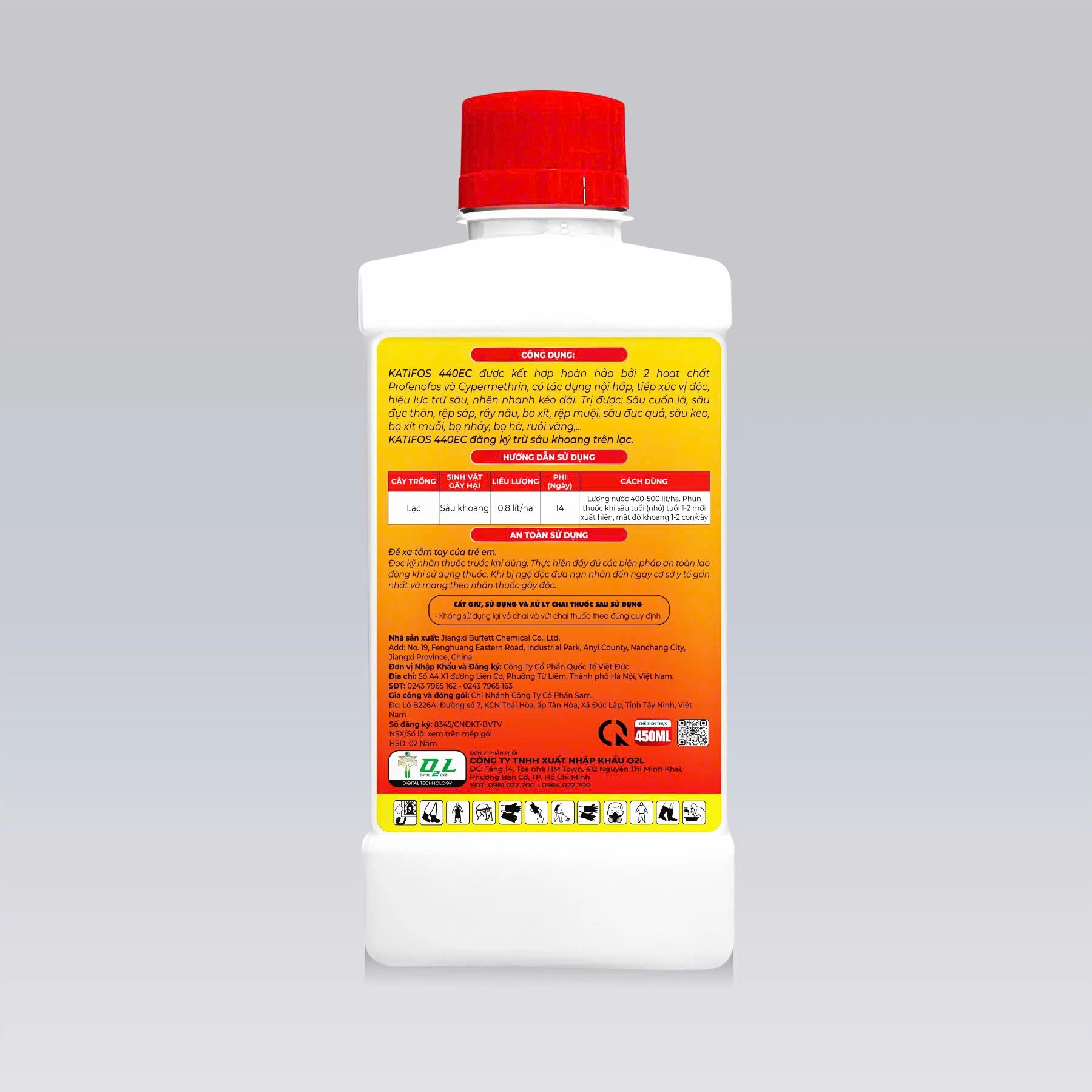 KATIFOS 440EC được kết hợp hoàn hảo bởi 2 hoạt chất Profenofos và Cypermethrin, có tác dụng nội hấp, tiếp xúc vị độc, hiệu lực trừ sâu, nhện nhanh kéo dài. Trị được: Sâu cuốn lá, sâu đục thân, rệp sáp, rầy nâu, bọ xít, rệp muội, sâu đục quả, sâu keo, bọ xít muỗi, bọ nhảy, bọ hà, ruồi vàng,…