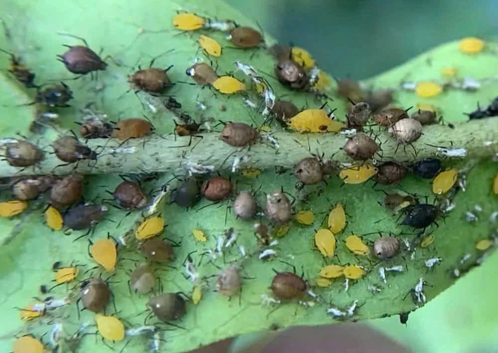 • Có thể phun dầu neem hoặc dung dịch xà phòng sinh học để giảm mật độ rầy.