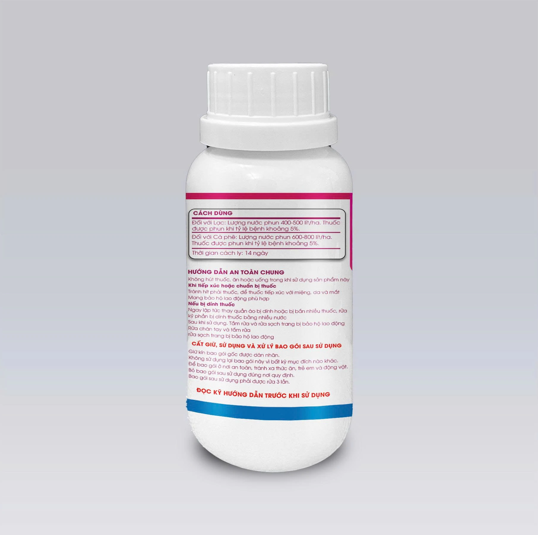 – Đặc trị: Nấm bệnh, thán thư, phấn trắng, sẹo trái, rụng trái, rỉ sắt, cháy bìa lá, sương mai, lem lép hạt, giả sương mai